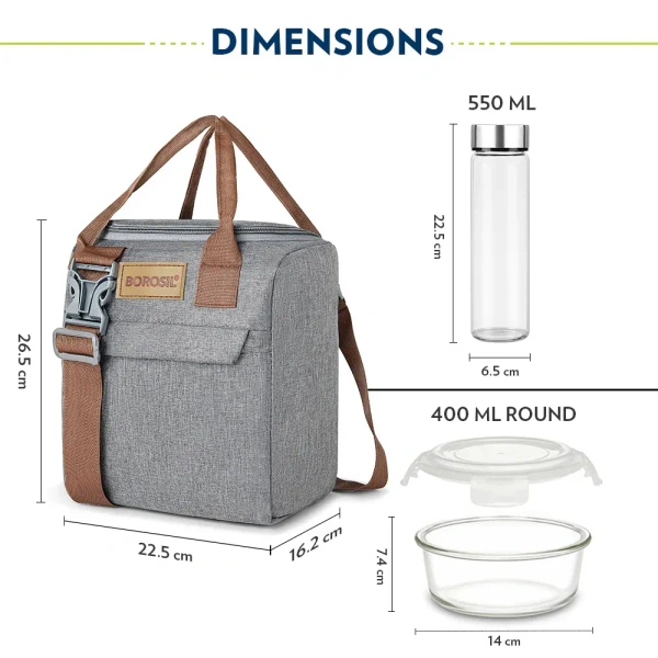 Borosil Glass Pro 3 Containers Lunch Box with Glass Bottle | Lunch Bag | Microwave